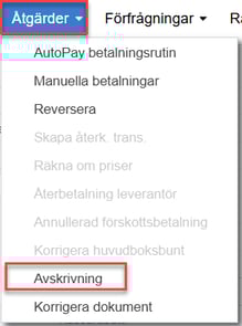 Har man en leverantörsfaktura som har ett litet restbelopp kvar så kan man använda åtgärden avskrivning direkt på fakturan.