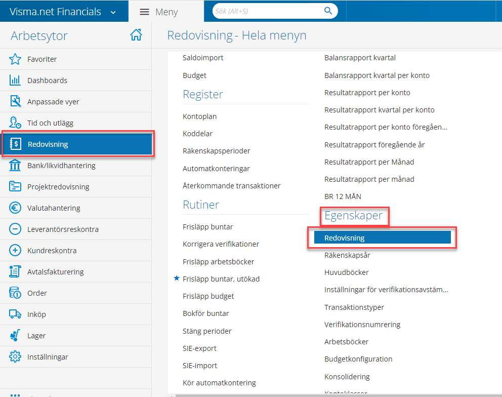 För att ändra dessa inställningar navigerar du till Redovisning --> Egenskaper --> Redovisning.