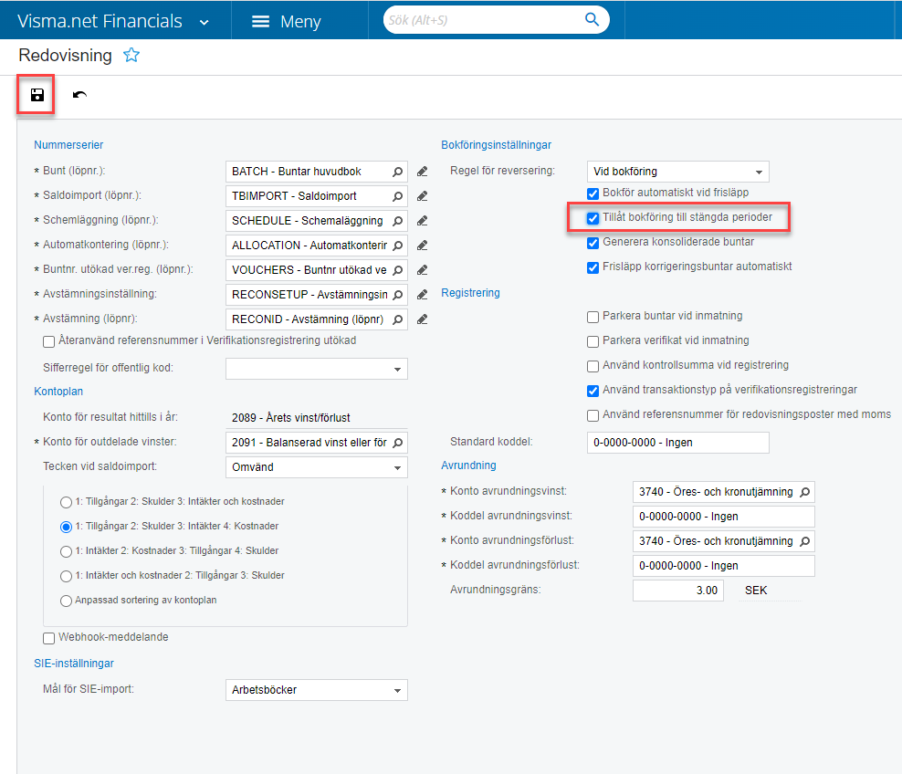 Som standard i Visma.net Financials är det inställt att man inte ska kunna bokföra i stängda perioder, för att förhindra bokföring i stängda perioder av misstag. Om man dock skulle behöva bokföra i en redan stängd period kan man ändra i inställningarna för att möjliggöra detta.
