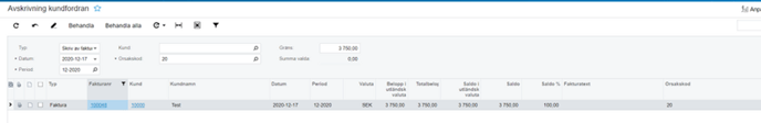 När den befarade kundförlusten är konstaterad så är det dags att stänga fakturan i kundreskontra. För att lösa detta i Visma.net ERP så krävs dels lite inställningar och lite handpåläggning av fakturan.