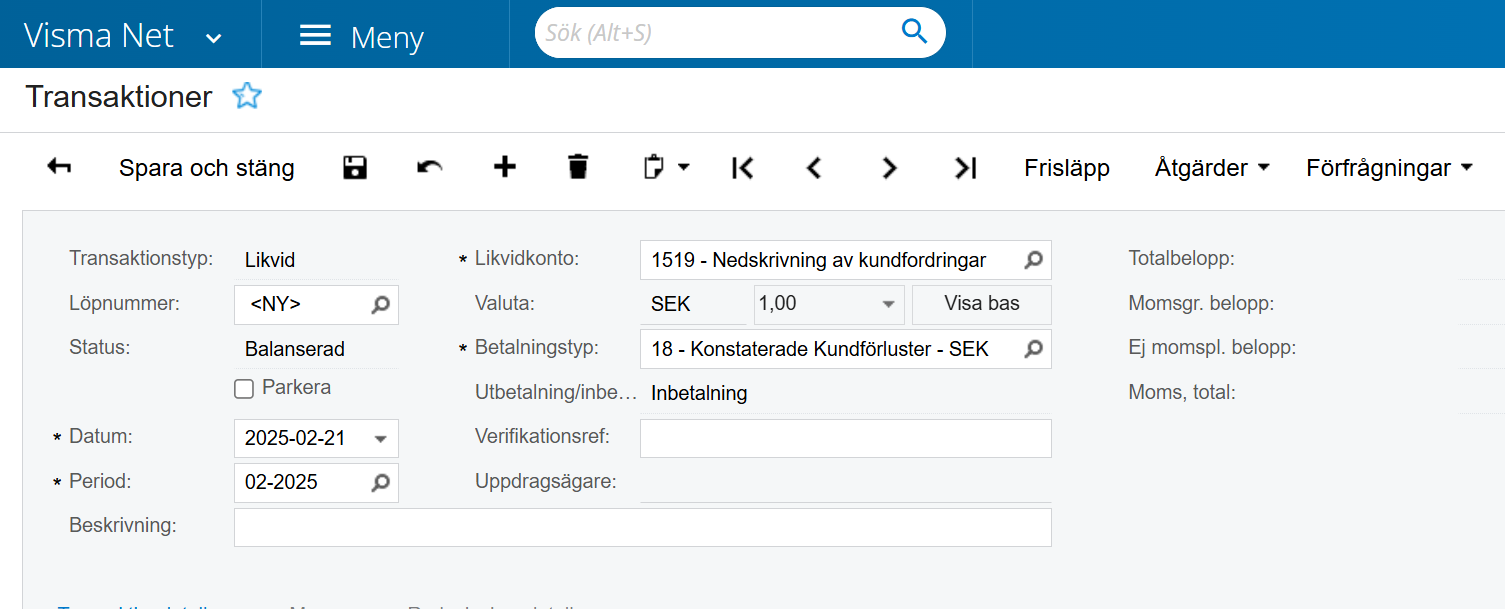 Det finns också situationer där vi vill boka en konstaterad kundförlust utan att först ha bokat en befarad kundförlust.
