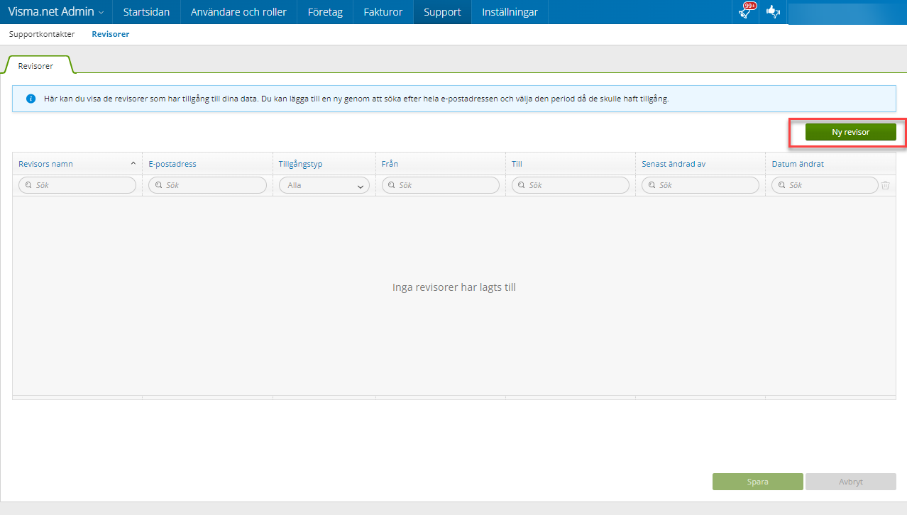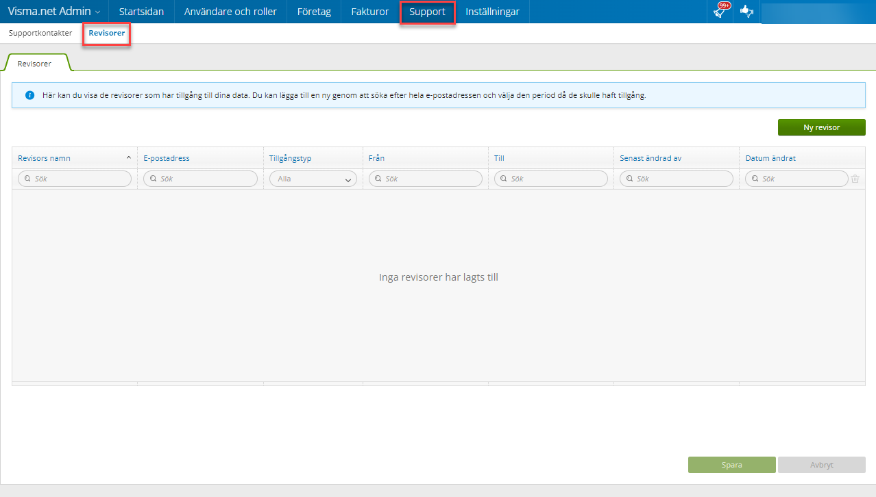 Steg 2 - I Visma Admin, gå till Support --> Revisorer