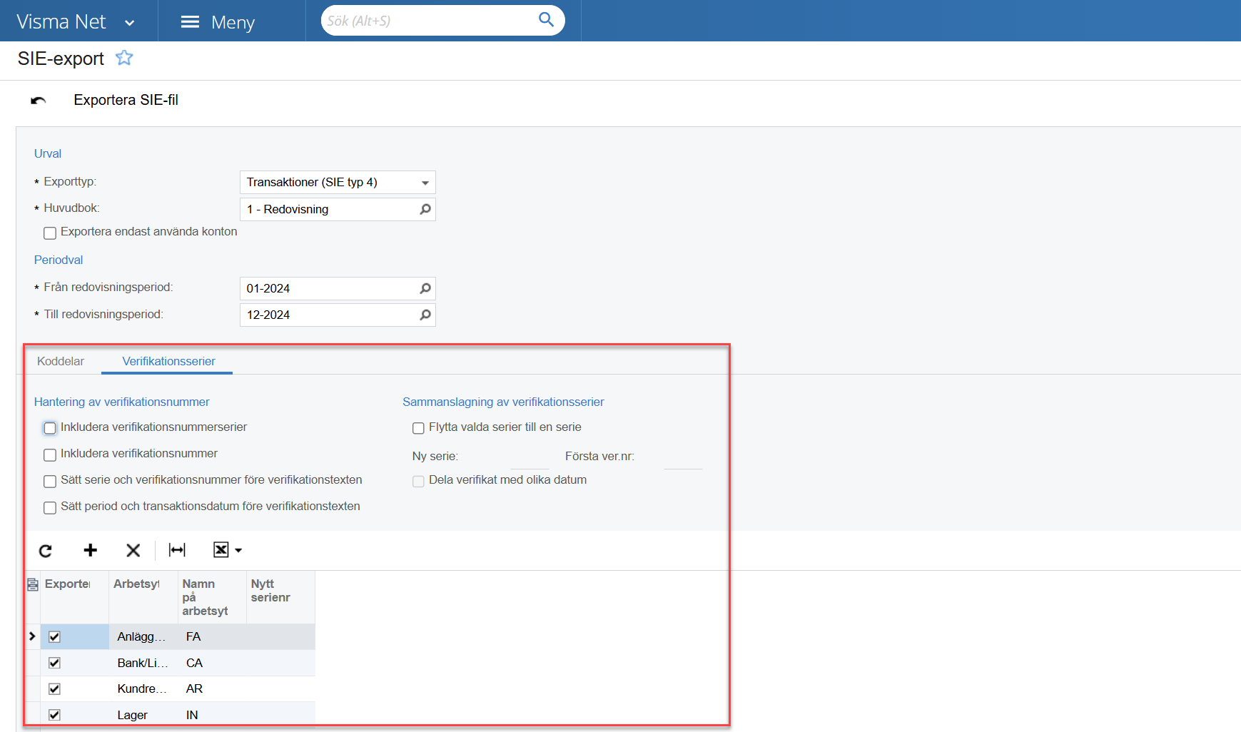 - Inkludera verifikationsnummerserier: Lägg till nummerserier i filen.